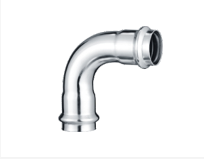 卡压式不锈钢管件端部的U型槽内装有特制的橡胶密封圈,安装时将不锈钢水管插入到卡压式不锈钢管件承口至定位台阶位置,用专用的卡压工具对U型槽和U型槽一侧或两侧的卡压部位同时进行卡压作业。橡胶密封圈受挤压后起密封作用,在卡压部位不锈钢管件和不锈钢水管同时收缩变形(剖面形成六角形状),起到定位固定作用,从而有效地实现了不锈钢管件的连接。